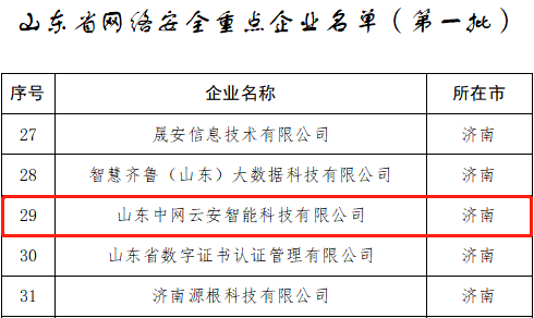 8月15日,根据《关于促进山东省网络安全产业开展的指导意见》(鲁网办发〔2021〕1号),省委网信办、省工业和信息化厅组织召开了山东省网络安全重点企业(组织)入库遴选工作,以充分发挥重点企业(组织)对促进网络安全产业、技术、人才融合开展的关键带动示范作用。企业自2021年11月提交申报材料以来,经过区、市局和省厅的多次筛选以及权威专家的专业评审程序,“山东304am永利集团智能科技有限公司”最终入选山东省网络安全重点企业(组织)名单(第一批)。